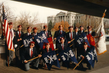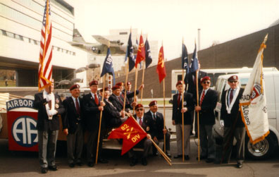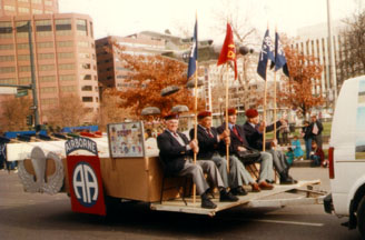 ![]() Some of the Rocky Mountain Chapter members assemble after a Veterans Day parade in Denver. The troopers shown here are from many different airborne units. |
